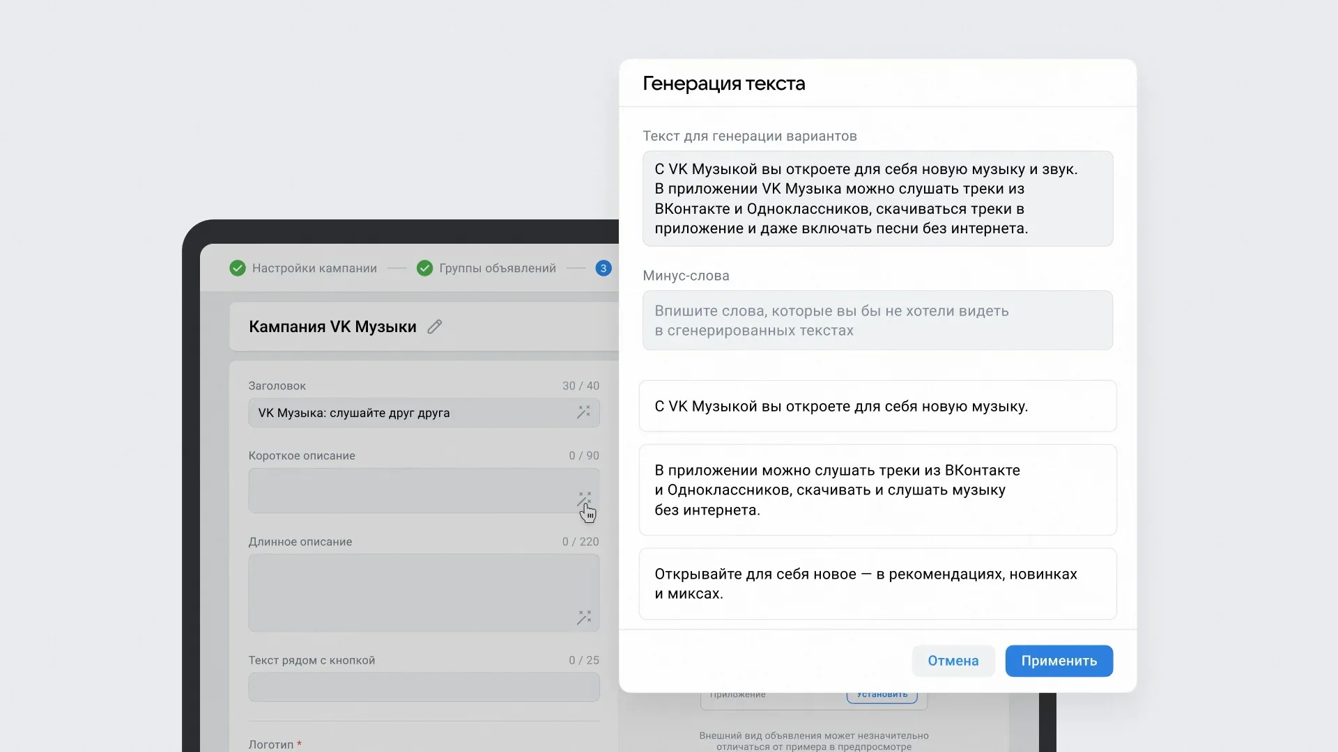 «VK Реклама»: автоматическая генерация текстов и заголовков объявлений