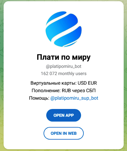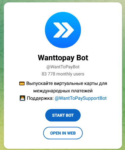 Wanttopay Bot— телеграм-бот для моментальной виртуальной карты без регистрации на сайте