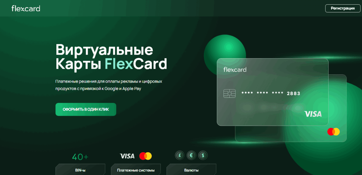Кому подходит: Индивидуальным специалистам и небольшим проектам, где важна скорость запуска. Если нужно быстро получить виртуальную карту для рекламы без бюрократии — отличный выбор. Подходит для разовых кампаний и тестовых запусков.