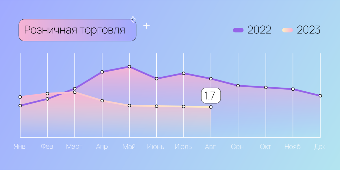 Например, hh.индекс в сфере розничной торговли в августе 2023 снизился до 1.7 — показатель острого дефицита соискателей.