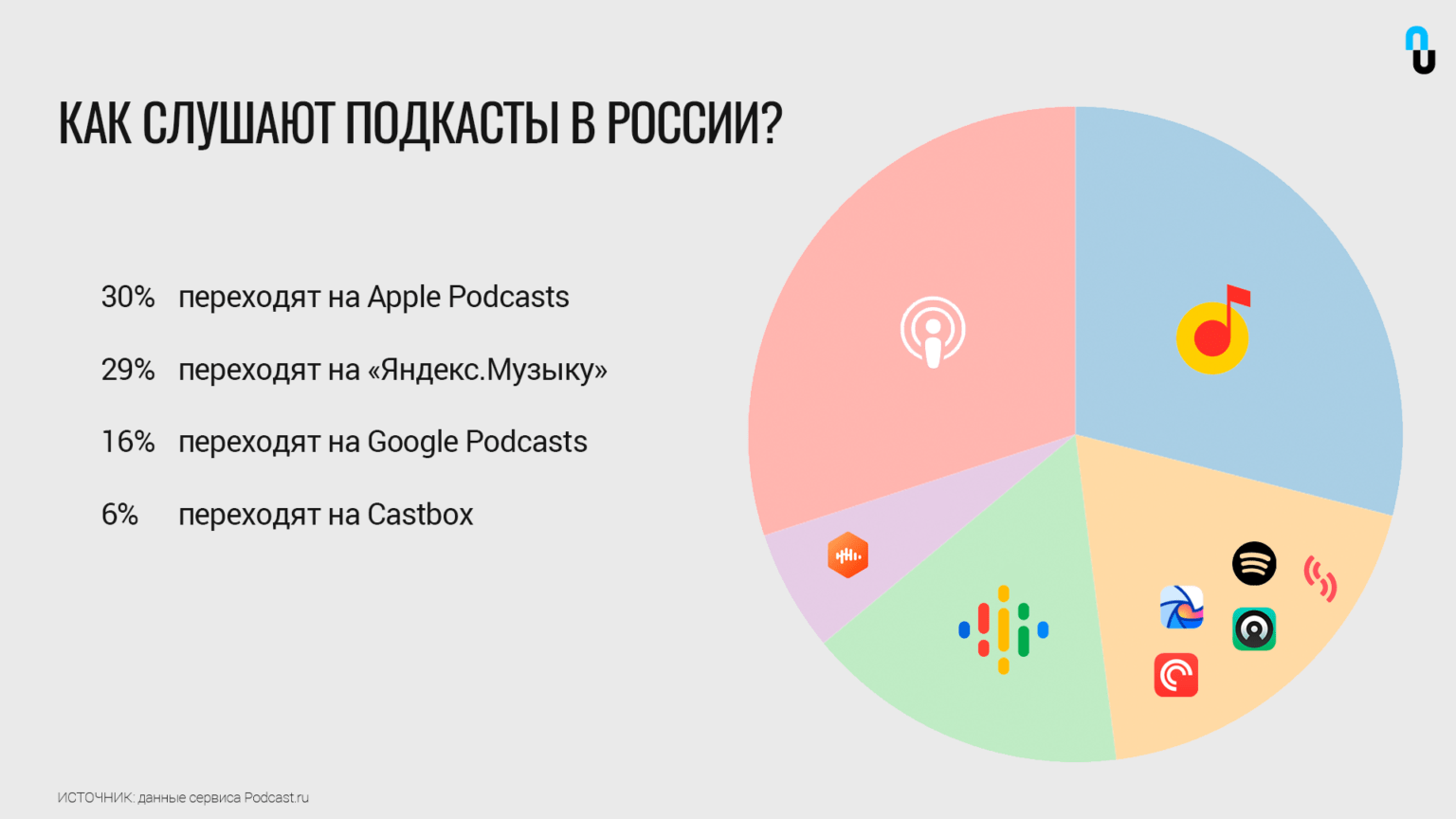 *по данным IAB Russia; оценивались подкасты общих массовых категорий (психология, карьера, мотивация etc.)