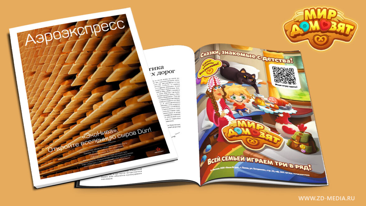 В летнем выпуске журнала «Аэроэкспресс» № 6–7 (июнь-июль 2025) разместили рекламу мобильной игры для всей семьи «Мир Домовят: три в ряд».