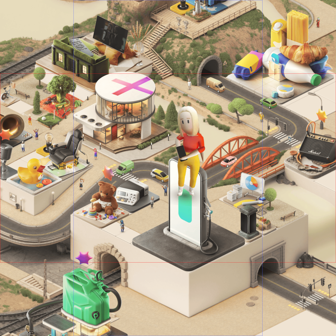 Вместо того чтобы ставить на карту очередное здание, подумали поставить телефон и посадить на него персонажа, чтобы сделать каламбур из строчки «Я играю на смартфоне».