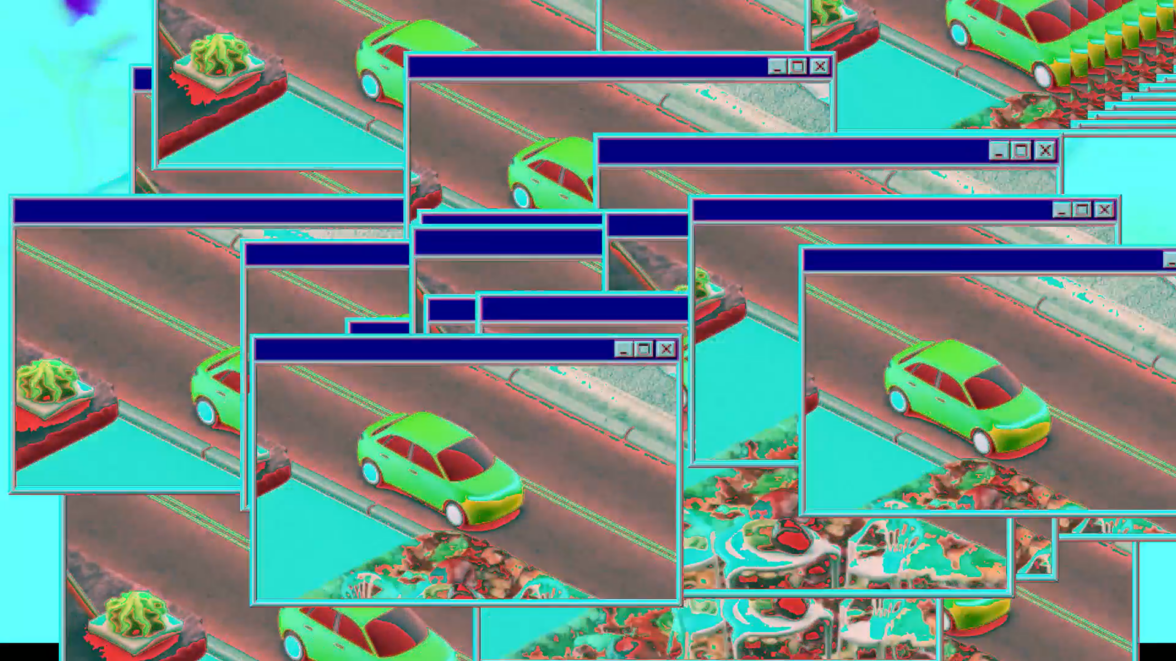 Затем вокруг машины появляется рамка окна windows 98 и как бы изымает машинку из пространства города. Тут снова прикалываемся и обыгрываем строчку «У меня машины ездят за окном». Как вы успели заметить каламбуры мы любим!