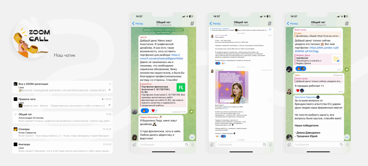 На созвон зарегистрировалось более 100 студентов. Всех участников мы собрали в общий чатик, где ребята могли познакомиться, задать вопросы, поделиться резюме и портфолио.