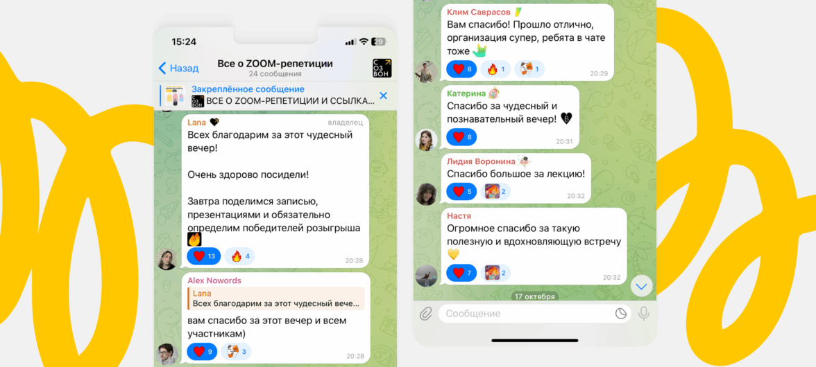Когда завершаешь мероприятие, важно сохранить атмосферу — ту энергию, которая осталась после последнего вопроса. И у нас она была невероятной: активный чат, десятки вопросов, новые знакомства и позитивный фидбек от участников.