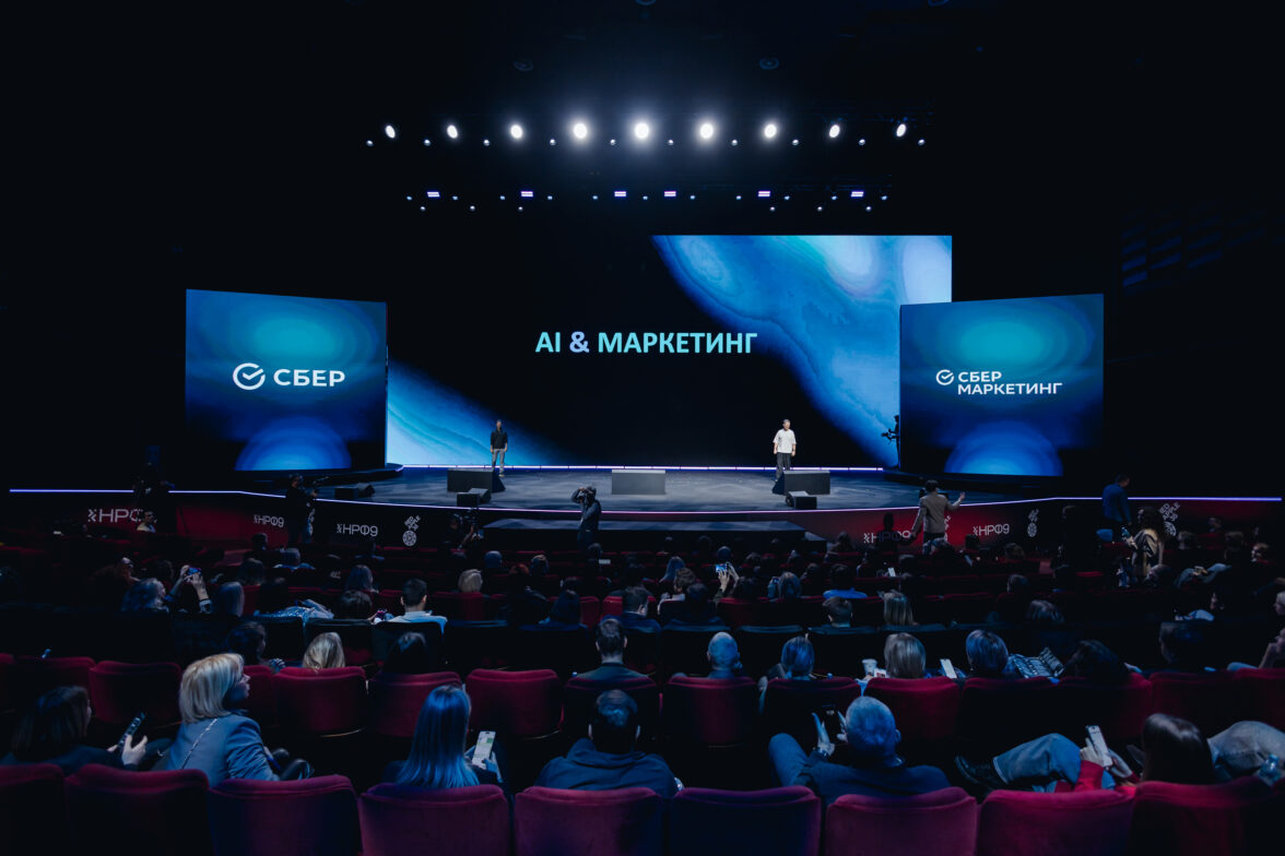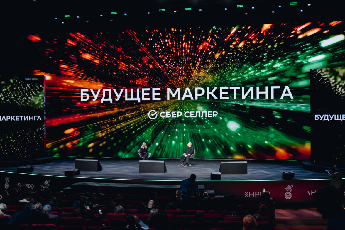 Сперва со сцены НРФ’9 они представляют исследование, которое провели СберСеллер и СберМаркетинг, и фильм о том, как изменится мир, технологии и сам человек в ближайшем будущем. И это важно, ведь маркетинг всегда следует за человечеством.