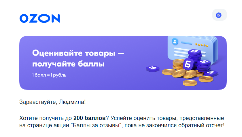Ozon дарит баллы за отзыв