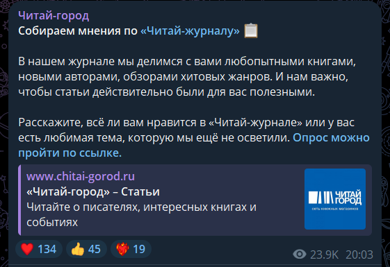Читай-город провёл опрос в телеграм-канале о своём проекте