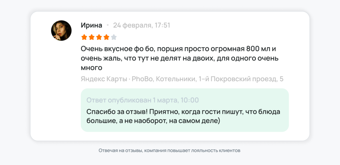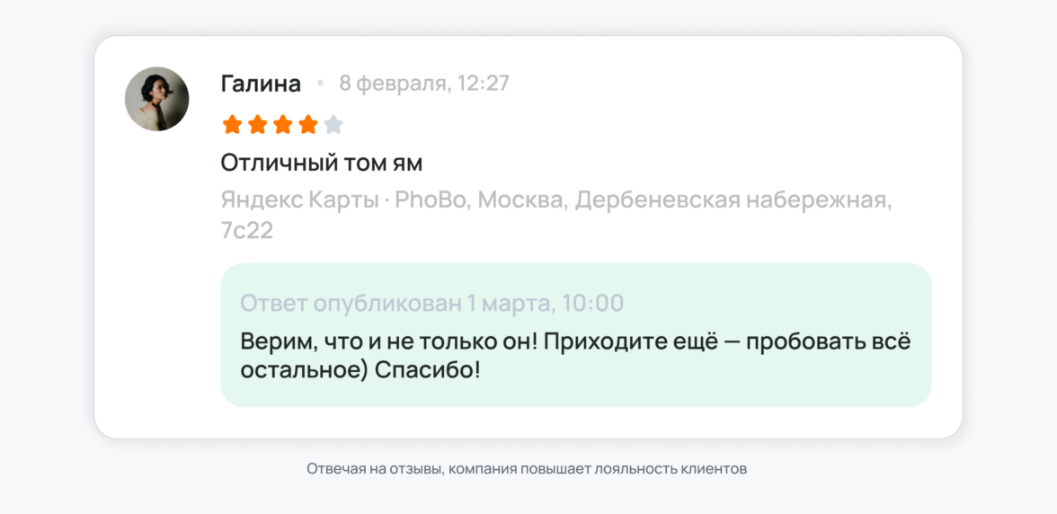 Отзывы автоматически приходят в единую ленту, не надо их собирать по разным платформам. Отвечать тоже удобно из одного окна.