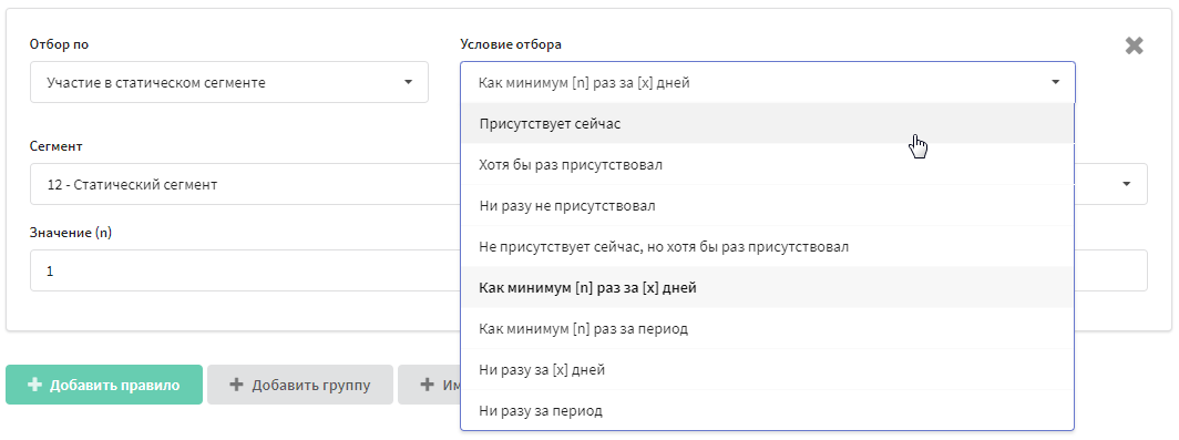 соответствует ли пользователь параметрам отбора сейчас или подходил под критерии в прошлом;