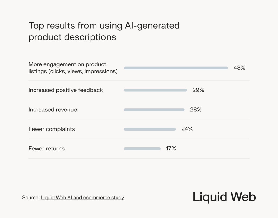 48% респондентов заявили, что карточки, созданные ИИ, приносят больше кликов и показов, 29% отметили большее количество положительных отзывов клиентов, 28% увидели рост продаж, у 24% сократилось количество жалоб на несоответствие товара и описания.
