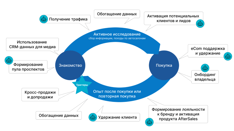 В первую очередь нам было важно правильно интегрировать мессенджер-маркетинг в общую CRM-стратегию компании, чтобы решать задачи центра поддержки клиентов, маркетинга и отдела послепродажного обслуживания: эффективнее отвечать на вопросы пользователей, собирать заявки, расширять клиентскую базу, продавать услуги, запчасти и автомобили.