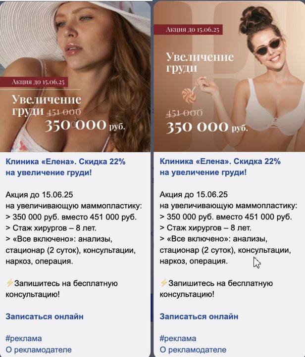 2. Продвижение акции на маммопластику со сроком действия до 15 июня.