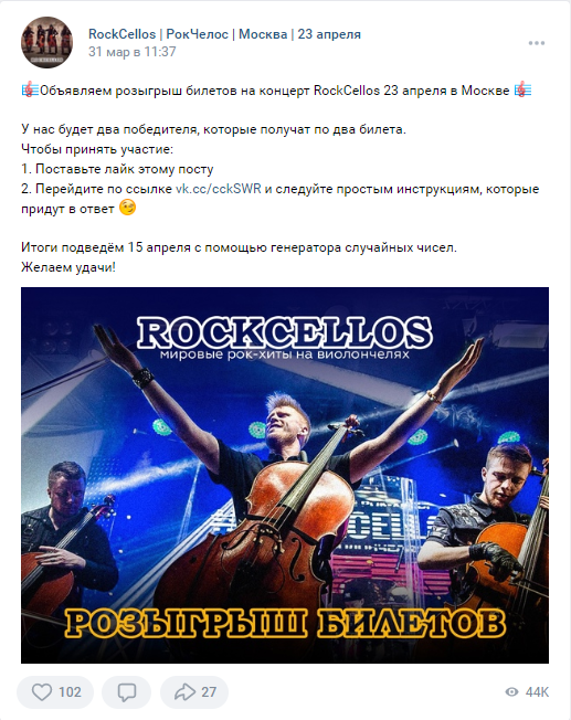 Рок на виолончелях. Продвижение концертов в Москве и Питере