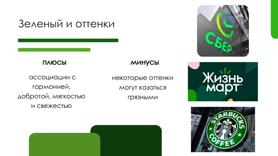 80% брендов становятся узнаваемыми именно благодаря своему фирменному цвету (как популярный «зелёный банк»)