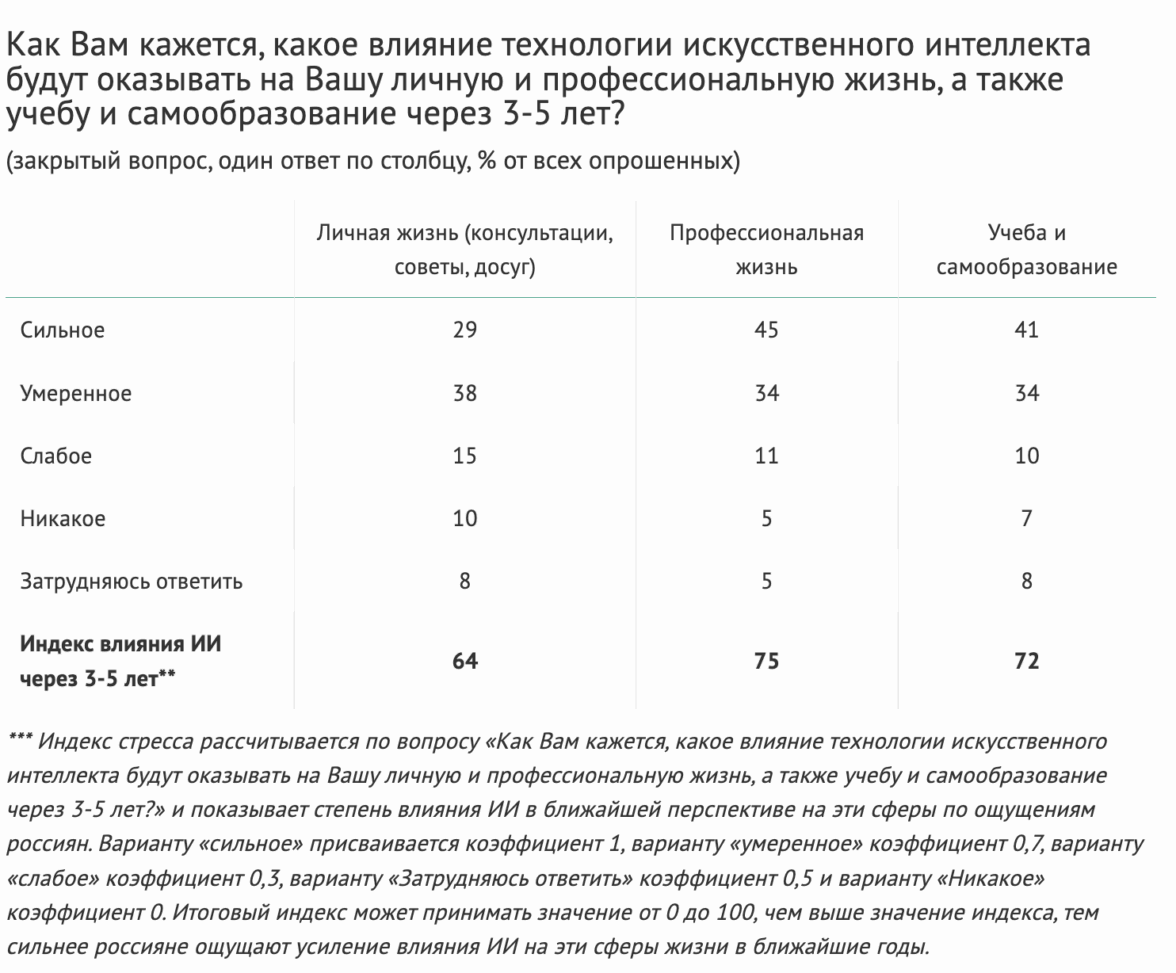 Каким видят россияне влияние ИИ на их жизнь через 3–5 лет