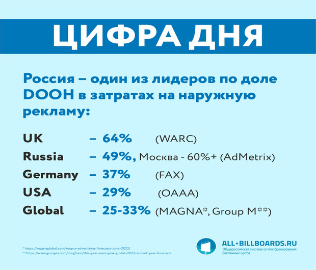 USA — 29% (Американская Ассоциация наружной рекламы, OAAA);