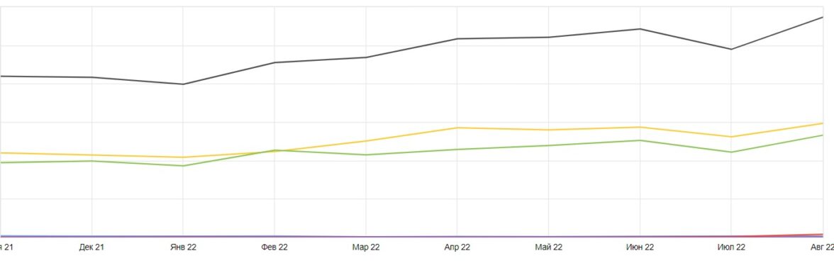 За 2022 год нам удалось увеличить трафик с поисковых систем на 39% процентов. Прирост с ПС Яндекс составил 20%, с ПС Google — 62%.