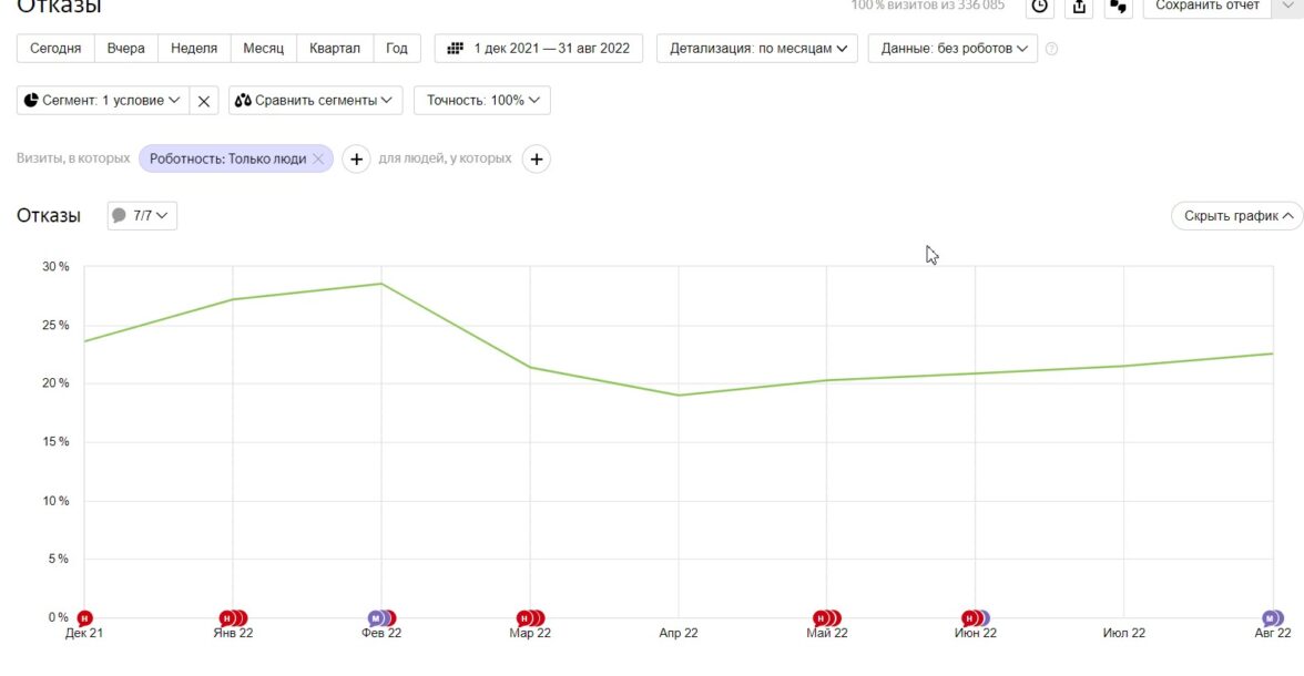 Процент отказов снизился на 16% — это особенно заметно по итогам февраля, когда предварительные этапы были завершены, и работа по продвижению встала на ровные рельсы.