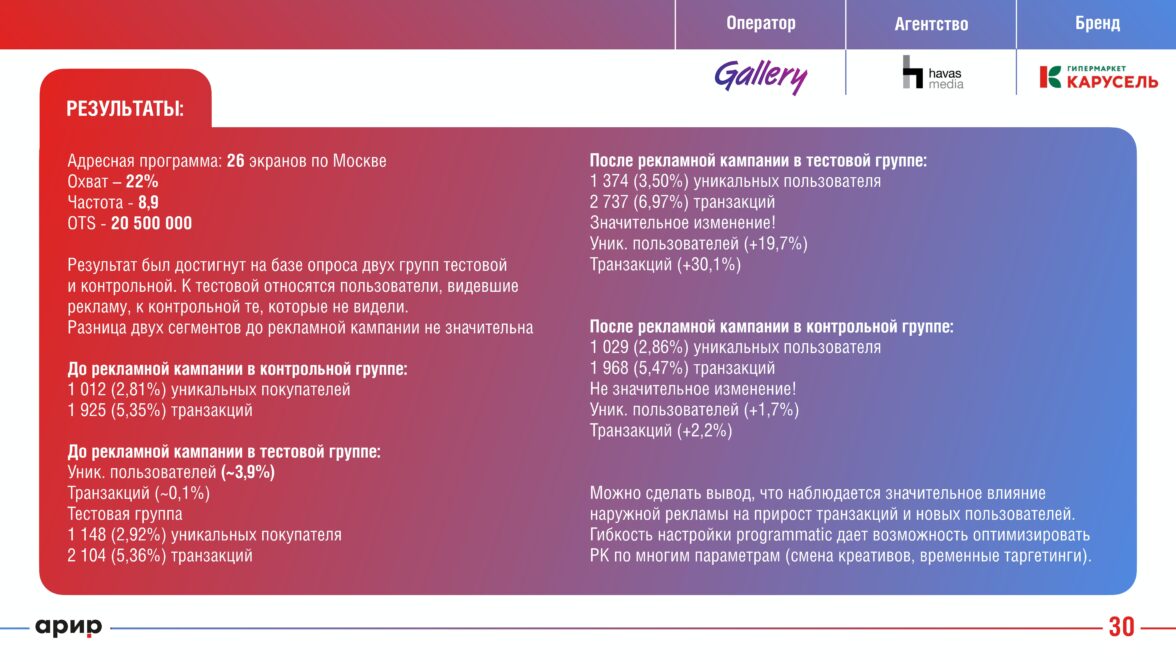 Результаты измерений показали значительное влияние наружной рекламы как на рост количества транзакций, так и на прирост новых покупателей.