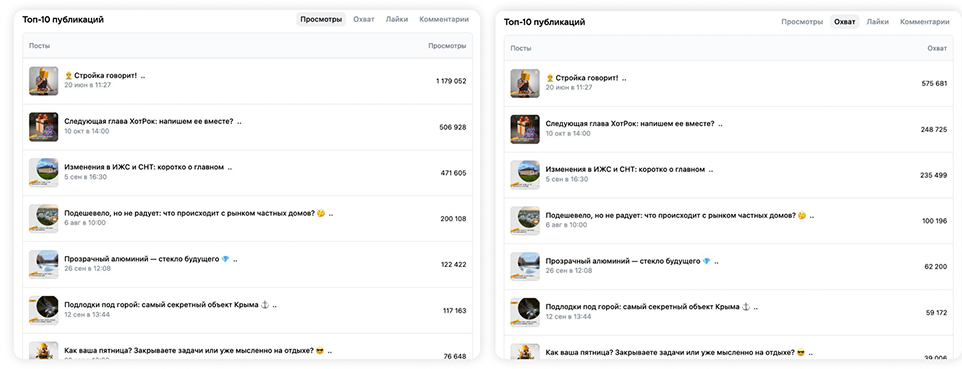 Средние виральные охваты публикаций — 20–300 тыс. (было 1–2 тыс.).