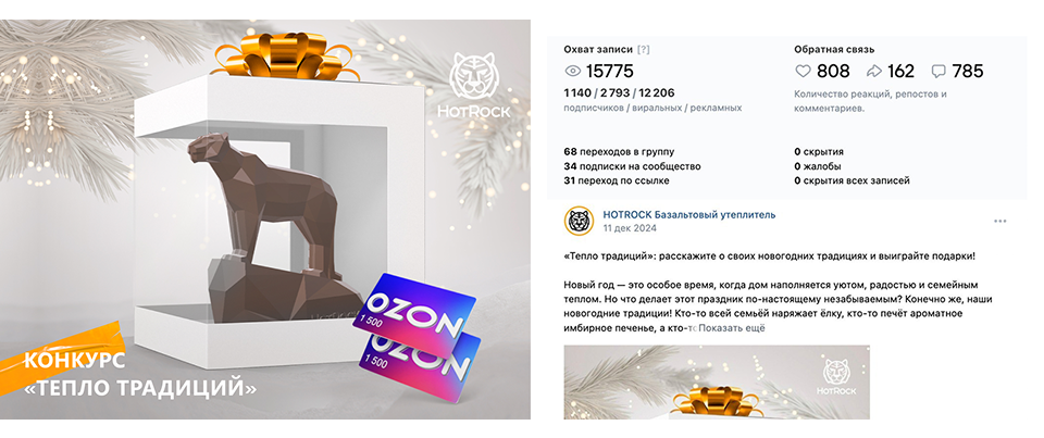 Декабрь 2024 — мощный новогодний конкурс «Тепло традиций». Тысячи лайков, репостов и комментариев за неделю. Алгоритмы впервые «увидели», что сообщество живое. Этот конкурс стал отправной точкой: повысилась вовлеченность, посты начали чаще появляться в рекомендациях.