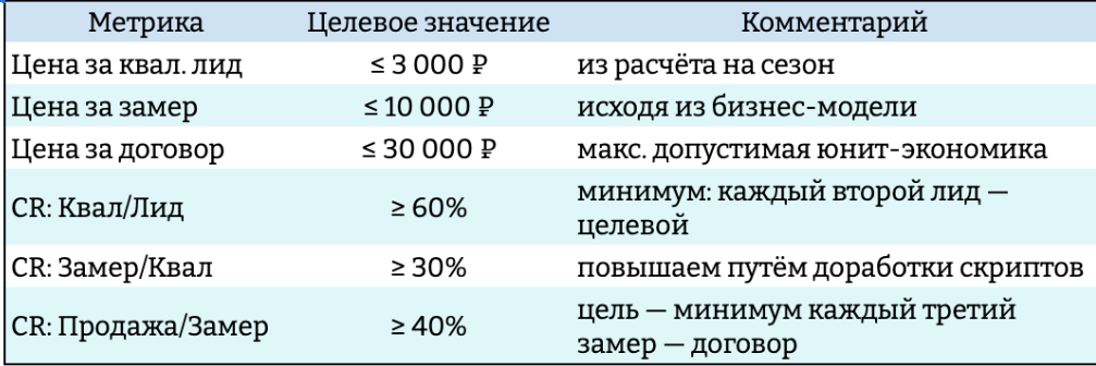 CR «Замер / Целевой лид» = 50%
