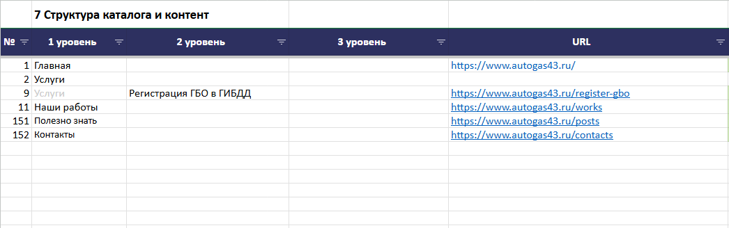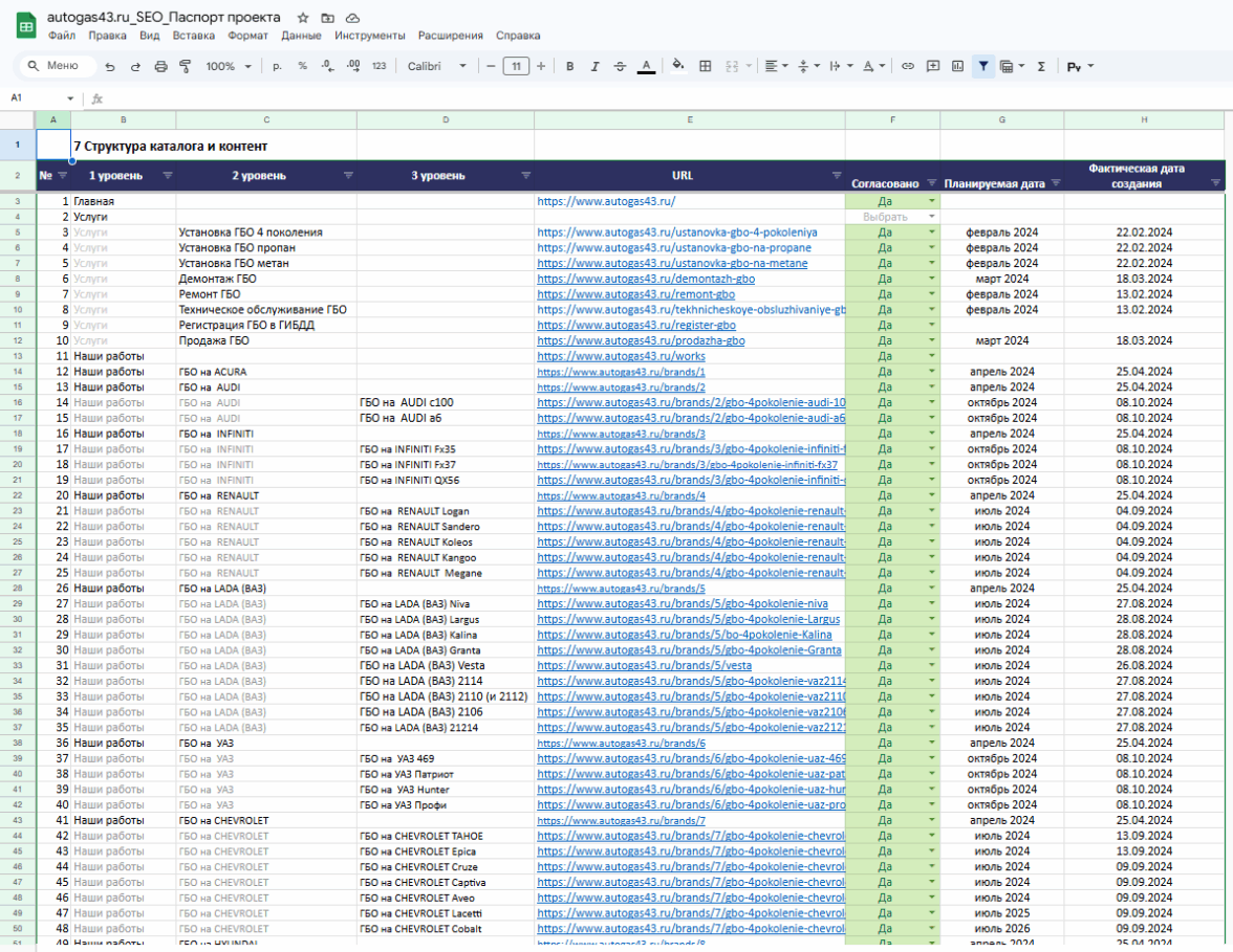 Одна из ключевых проблем — сайт был «пустым» по сравнению с конкурентами. Услуги не были описаны для посетителей, под типы ГБО и марки авто не было страниц, был блог, но велся скромно и не под SEO-цели.