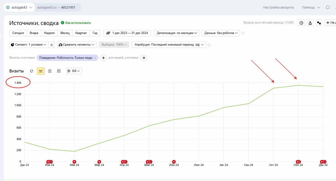 Работа длилась ровно год. Мы не делали ничего «волшебного» — просто системно устраняли барьеры, расширяли структуру, публиковали контент и наращивали доверие к сайту. Результаты превзошли ожидания.