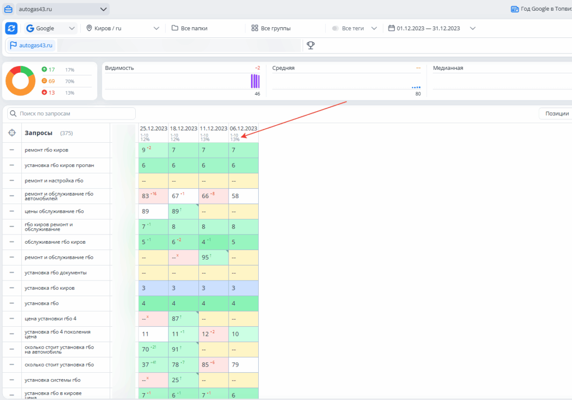 Google: было: 13% в ТОП-10 → стало: 23–25%