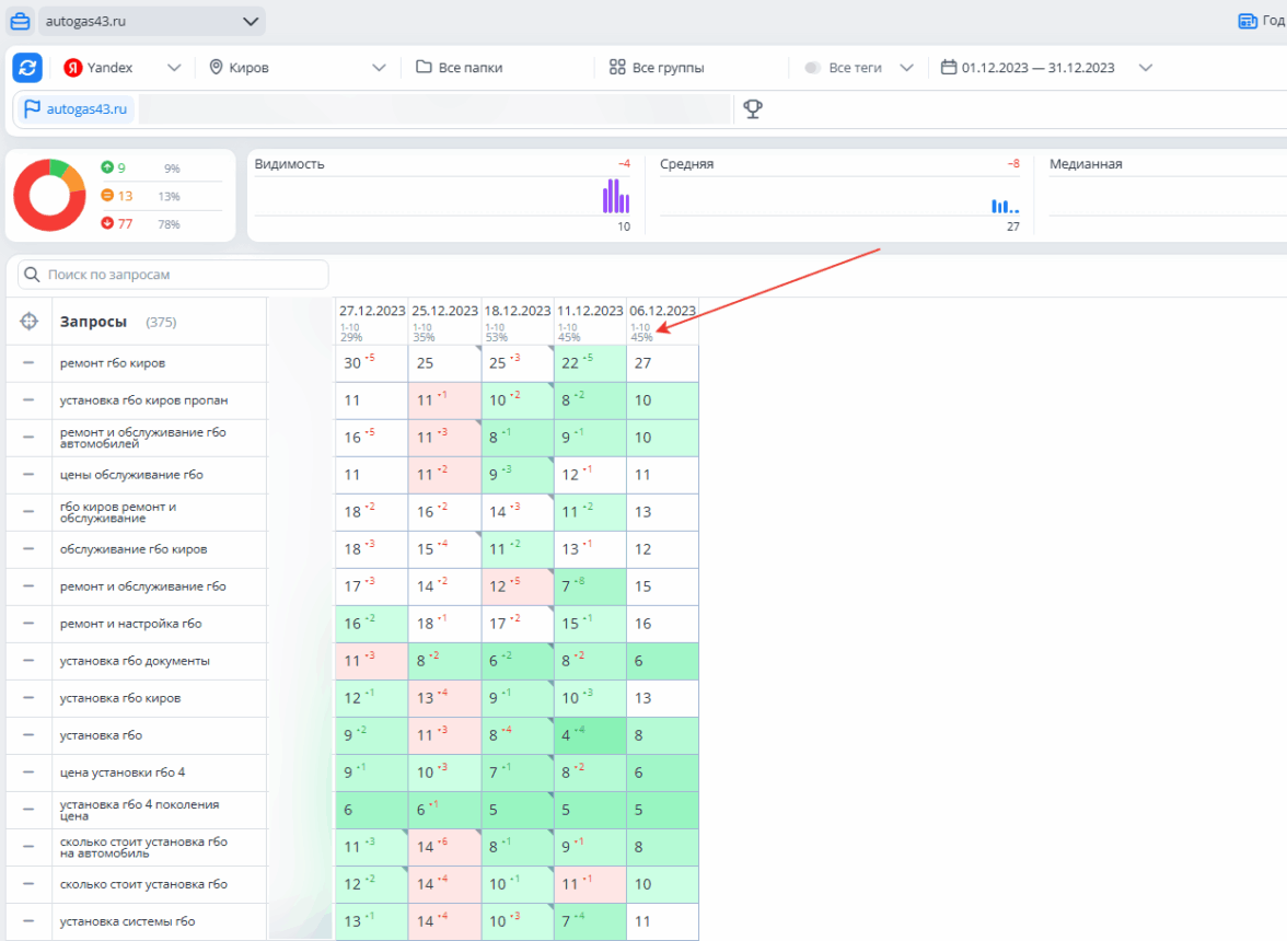 Яндекс: было 45% запросов в ТОП-10 → стало: 75–80%