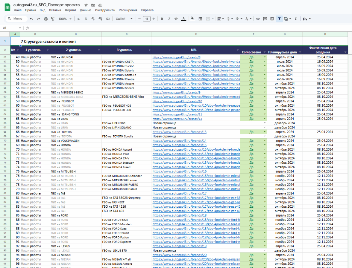 Продолжить расширение структуры. Создать страницы под конкретные марки и модели автомобилей, чтобы охватить больше СЧ и НЧ-запросов.
