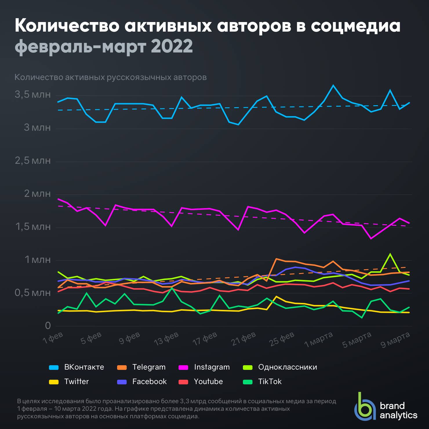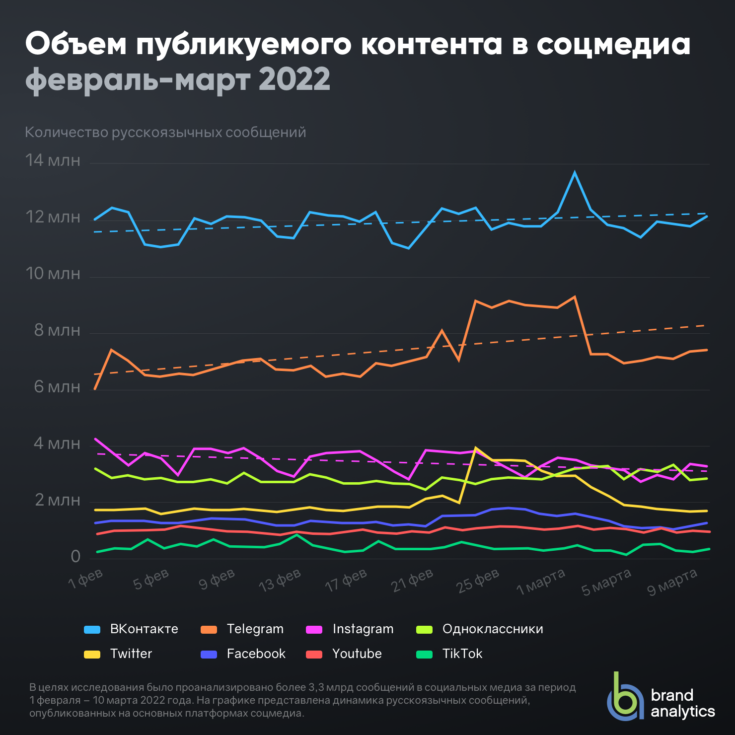 Было проанализировано более 3,3 млрд публикаций в различных соцмедиа за период с 1 февраля по 10 марта 2022 года.