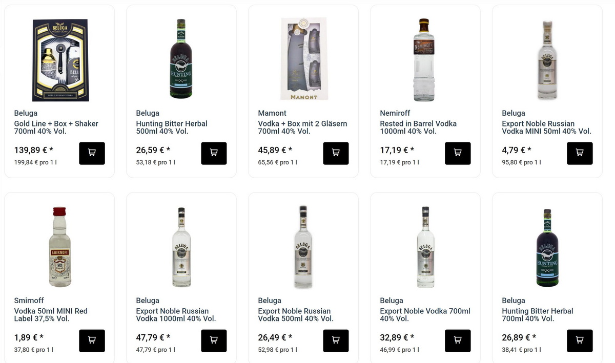Появление водки русских брендов на немецких прилавках директор Центра исследований федерального и региональных рынков алкоголя (ЦИФРРА) Вадим Дробиз объяснил реализацией возможных складских запасов, а в случае с водкой Beluga наличием производства в Европе (ликеро-водочный завод «Нексан» в Черногории был куплен Beluga Group в августе 2022 года).