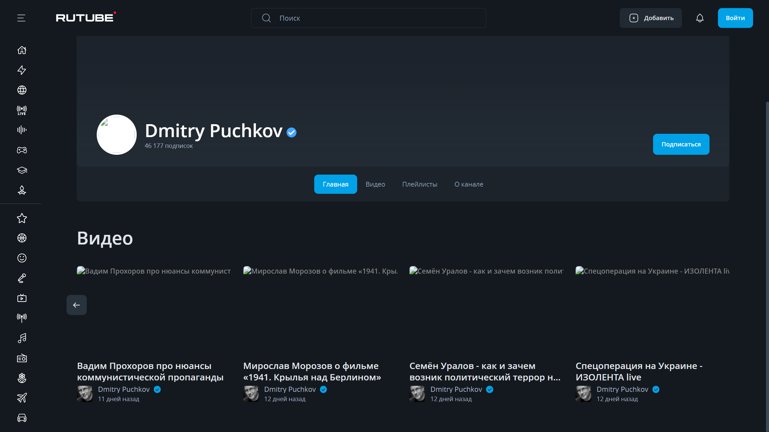 Страница канала выглядит аналогично. Превью, логотип канала и баннер канала не работают. Пока не восстановлена работа комментариев: на месте, где они должны быть, пусто. Видеоархив канала доступен.