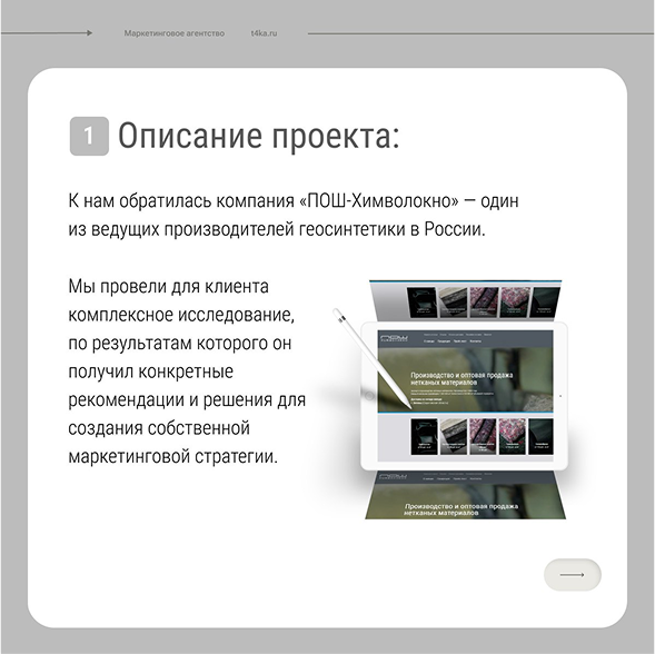 Всем привет! Мы — Маркетинговое агентство «В Точку», и мы знаем, как превратить сложный рынок в источник возможностей. В этом кейсе мы покажем, как мы перевернули представление о маркетинге для компании «ПОШ-Химволокно» на рынке геосинтетики.