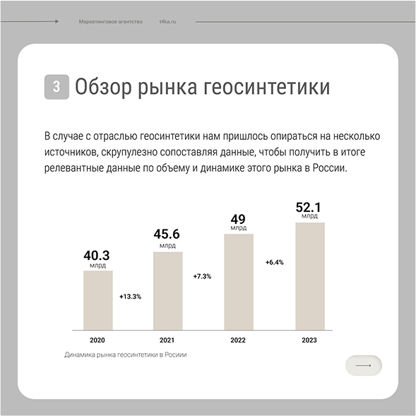 Блок 3. В третьем блоке мы определили тенденции и факторы развития отечественного рынка геосинтетики.