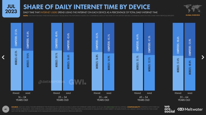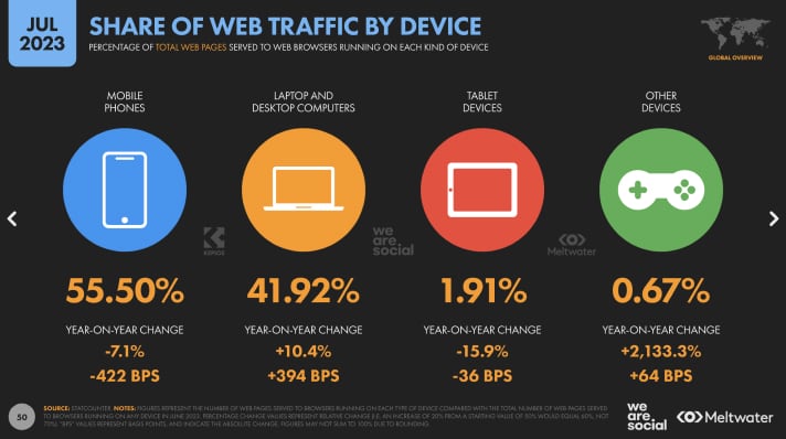 Какие девайсы выбирают юзеры по версии Digital 2023 July Global Statshot Report