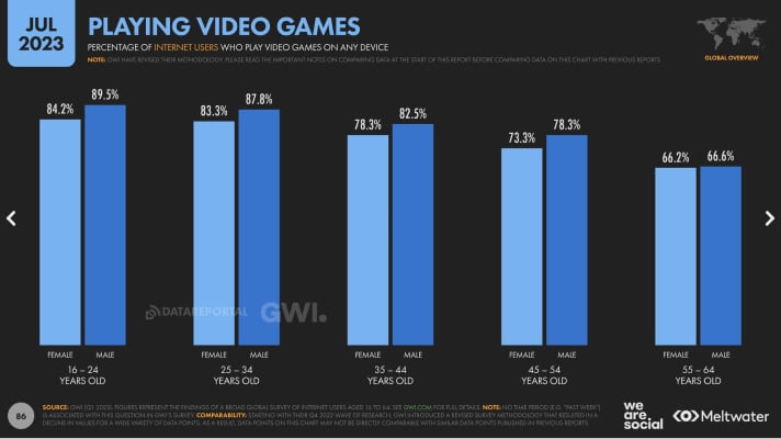 Digital 2023 July Global Statshot Report представила популярные игровые форматы в разбивке на возрастные сегменты.