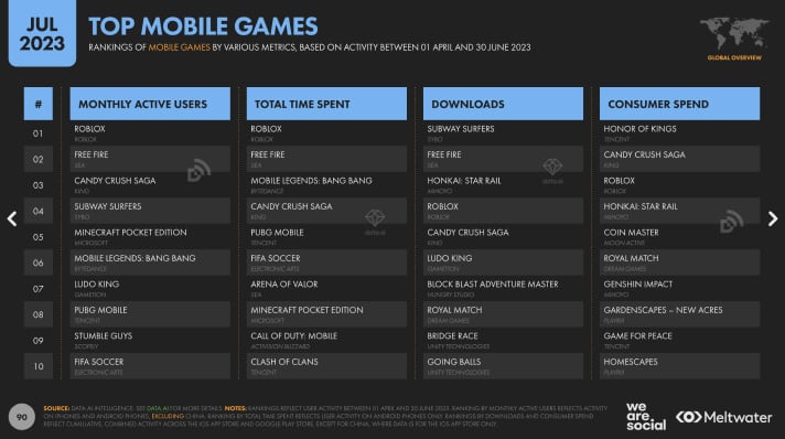 На момент выхода исследования Data Reportal, больше всего скачиваний у следующих игровых приложений: