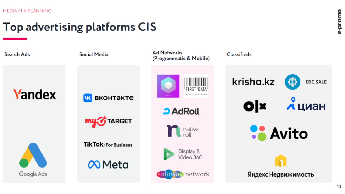 E-Promo Group. ТОП рекламных платформ для русскоязычной аудитории.