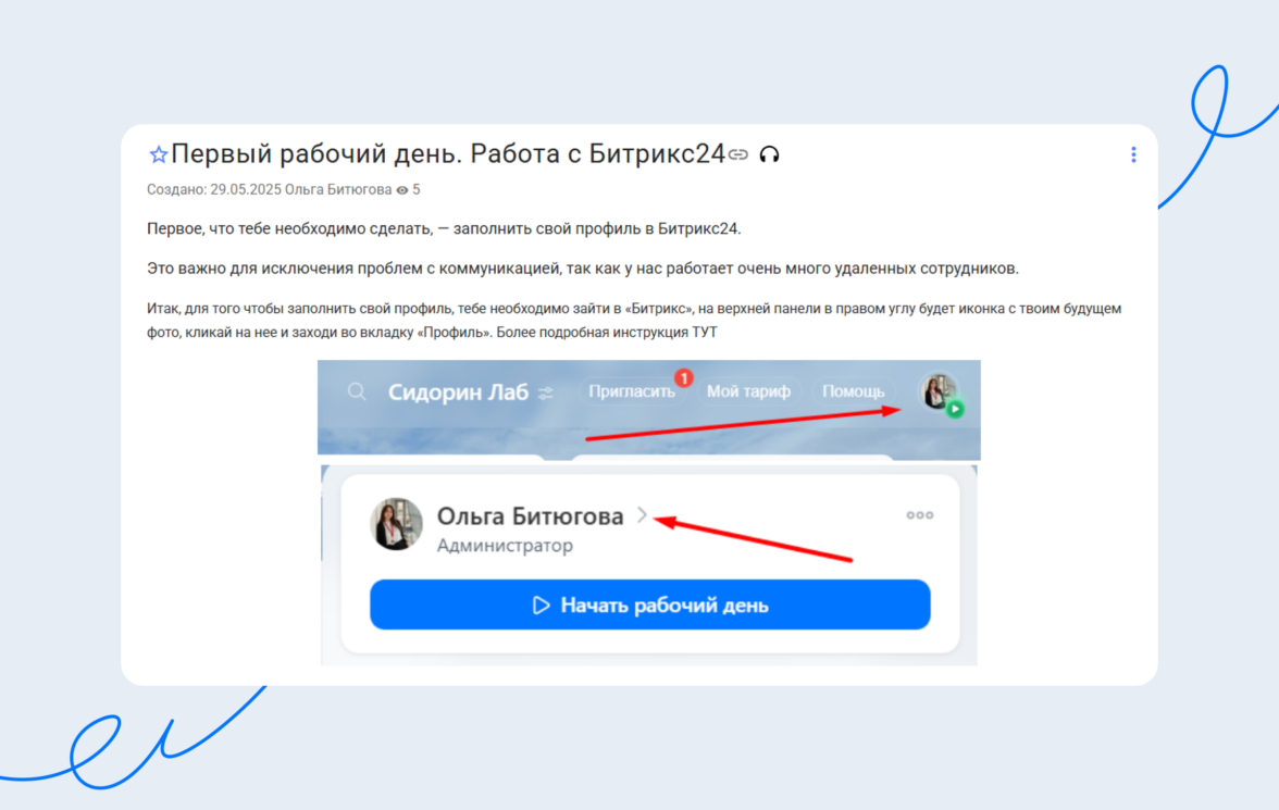 Онбординг. Написали подробные гайды для новичков: от поиска офиса до заполнения профиля в Битриксе. Ввели one-to-one встречи на испытательном сроке, чтобы отслеживать адаптацию.