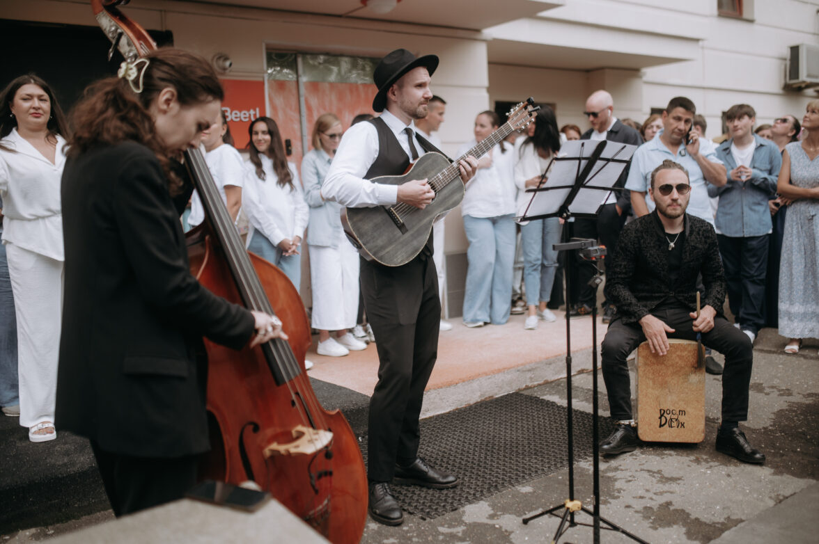 Идея пришла внезапно — исполнить песню Алексея Чумакова «Необыкновенная» под живой аккомпанемент музыкантов, переделав слова, в которых будут отзываться самые важные события в жизни именинницы. Помимо этого мы подарили Сапборд с индивидуальным дизайном, это было лучшее решение для такого активного и спортивного человека, как Лариса Фортуна!