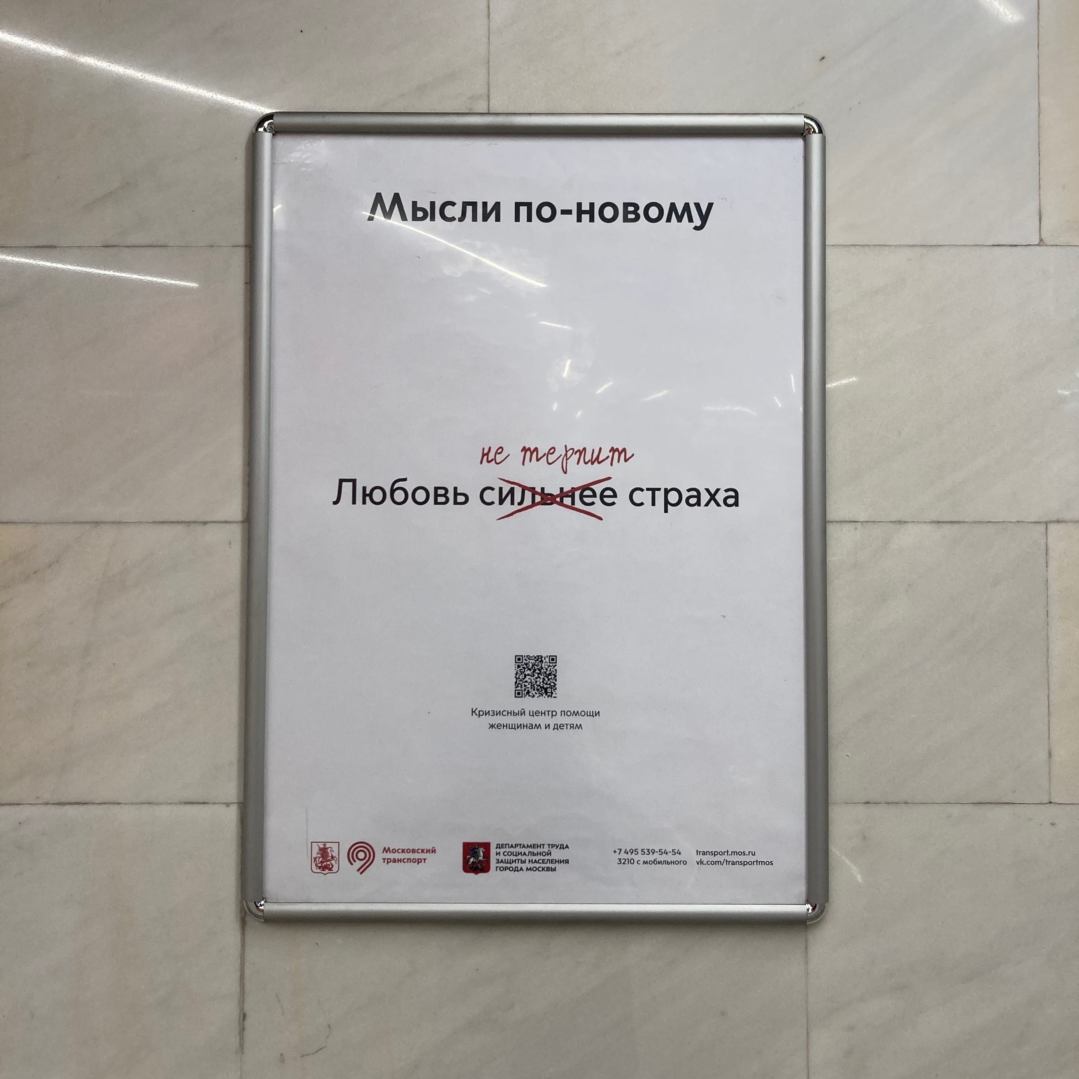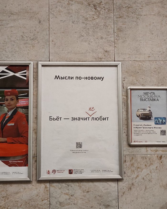 В московском метро запустили социальную рекламу в поддержку жертв домашнего насилия. Не дожидаясь внесения соответствующего законопроекта в Думу.