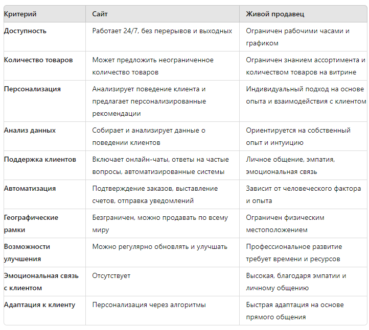 Конечно, несмотря на все преимущества интернет-платформы, не стоит забывать и о тех качествах, которые делают живого продавца незаменимым.