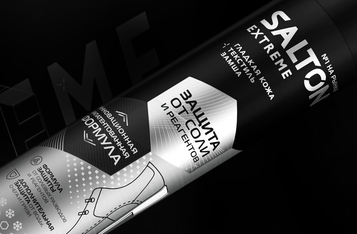 Совмещение фото реального изображения и графики — одна из фишек нового дизайна — позволяет в разы повысить ощущение технологичности от упаковки. В линейке EXTREME было решено совсем отказаться от фото обуви в пользу графического исполнения. Обувь как правило погружена либо в стилизованную среду, либо в само средство/краску.