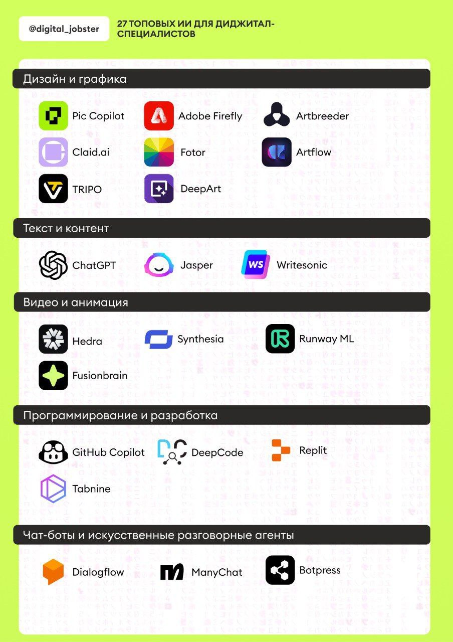 В подборке — 27 нейросетей! Сохраняй и отправляй коллегам