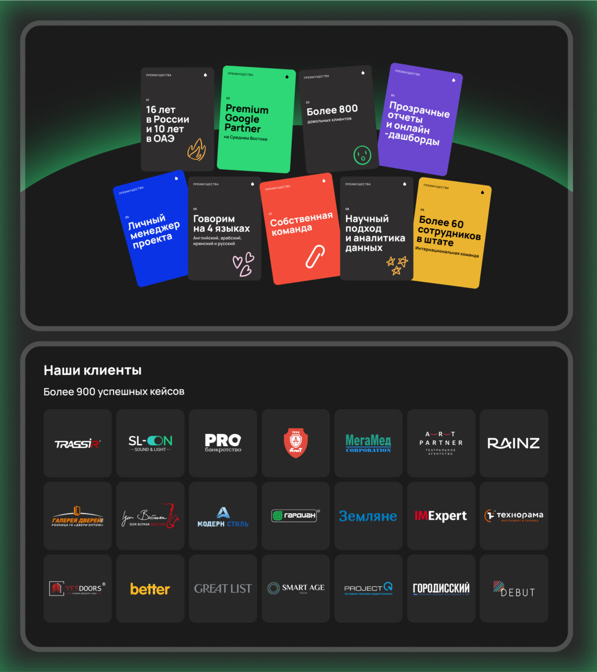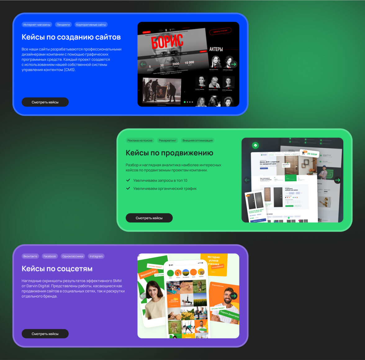 Так после обновления выглядят блоки для тех, кто уже знает, что ему нужно и для тех, кто изучает возможности агентства в работе с разными нишами