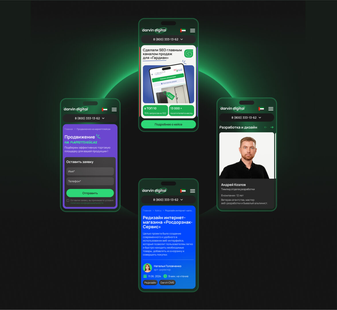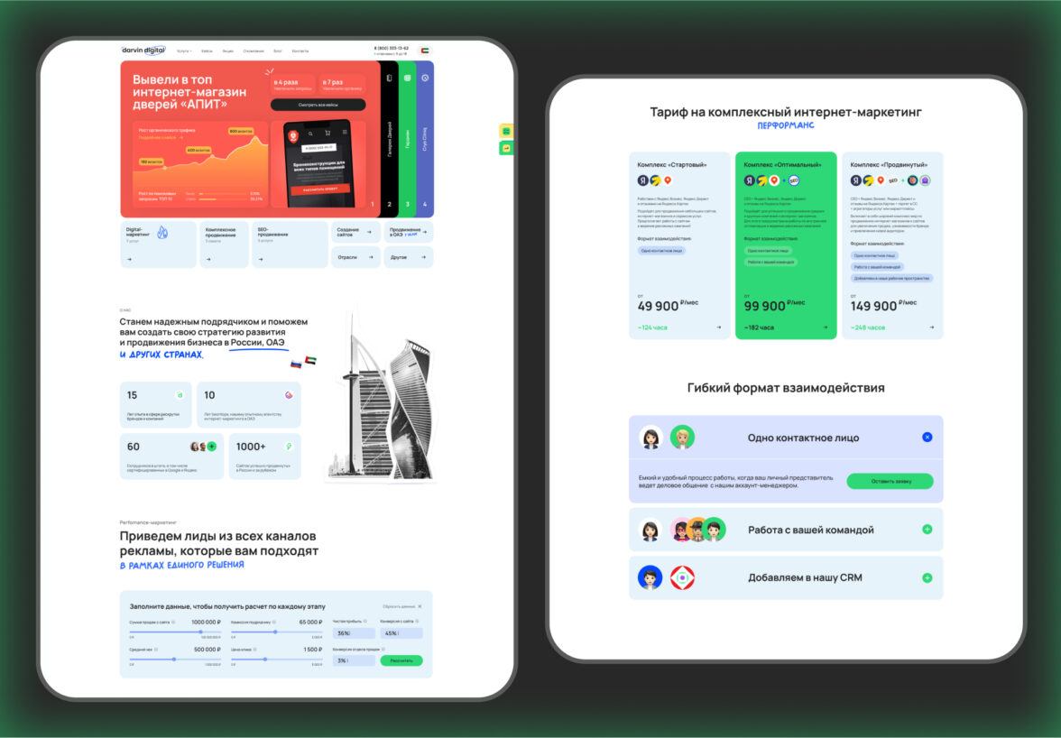 Darvin Digital на рынке с 2008 года. За плечами сотни маркетинговых стратегий, успешных рекламных кампаний, SEO для eCommerce и сурового B2B, сайты разного уровня сложности, аудиты, дизайн, контент. Клиенты — B2B-компании, девелоперы, промышленные бренды, маркетплейсы, eCom и даже заводы.